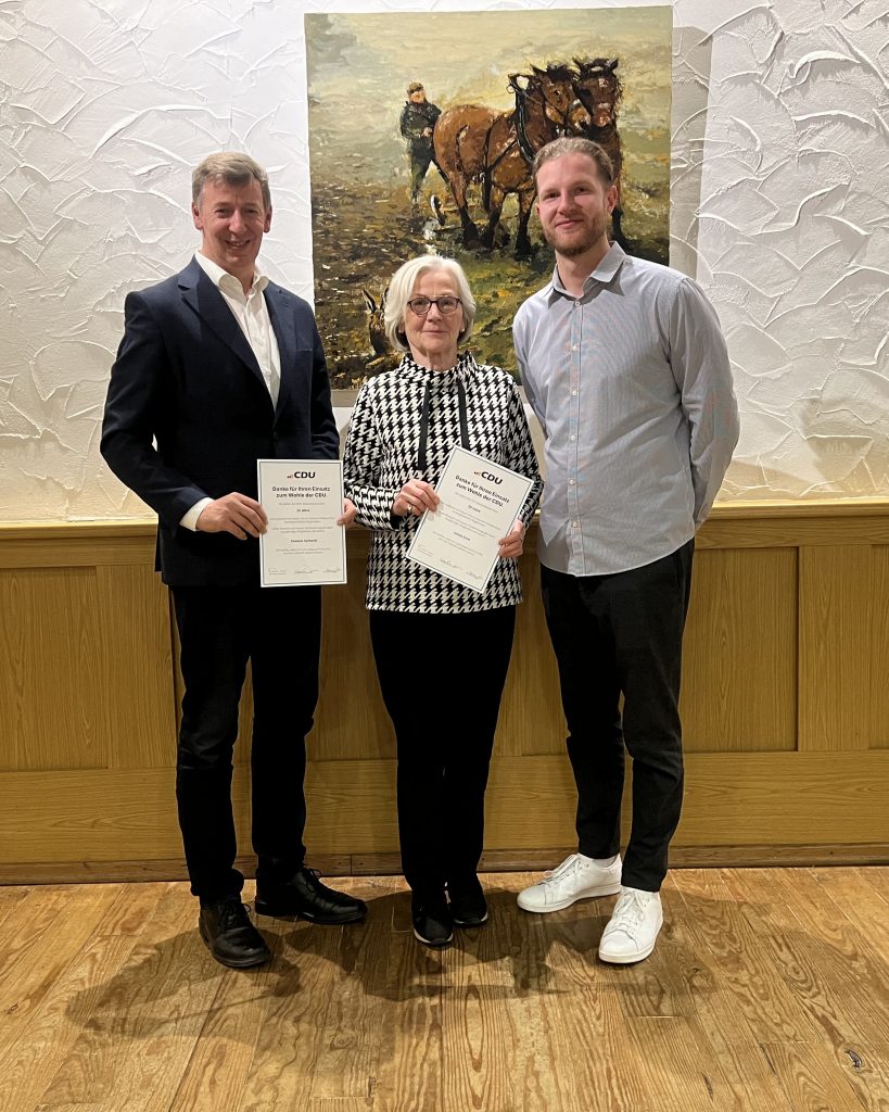 Ehrungen langjähriger Mitglieder rundeten die Versammlung ab. Ursula Ernst wurde für 50-jährige, Clemens Gerhardy für 25-jährige CDU-Mitgliedschaft ausgezeichnet. Der Vorstand bedankte sich bei beiden für das ehrenamtliche politische Engagement über so viele Jahre in der Gemeinde und darüber hinaus.